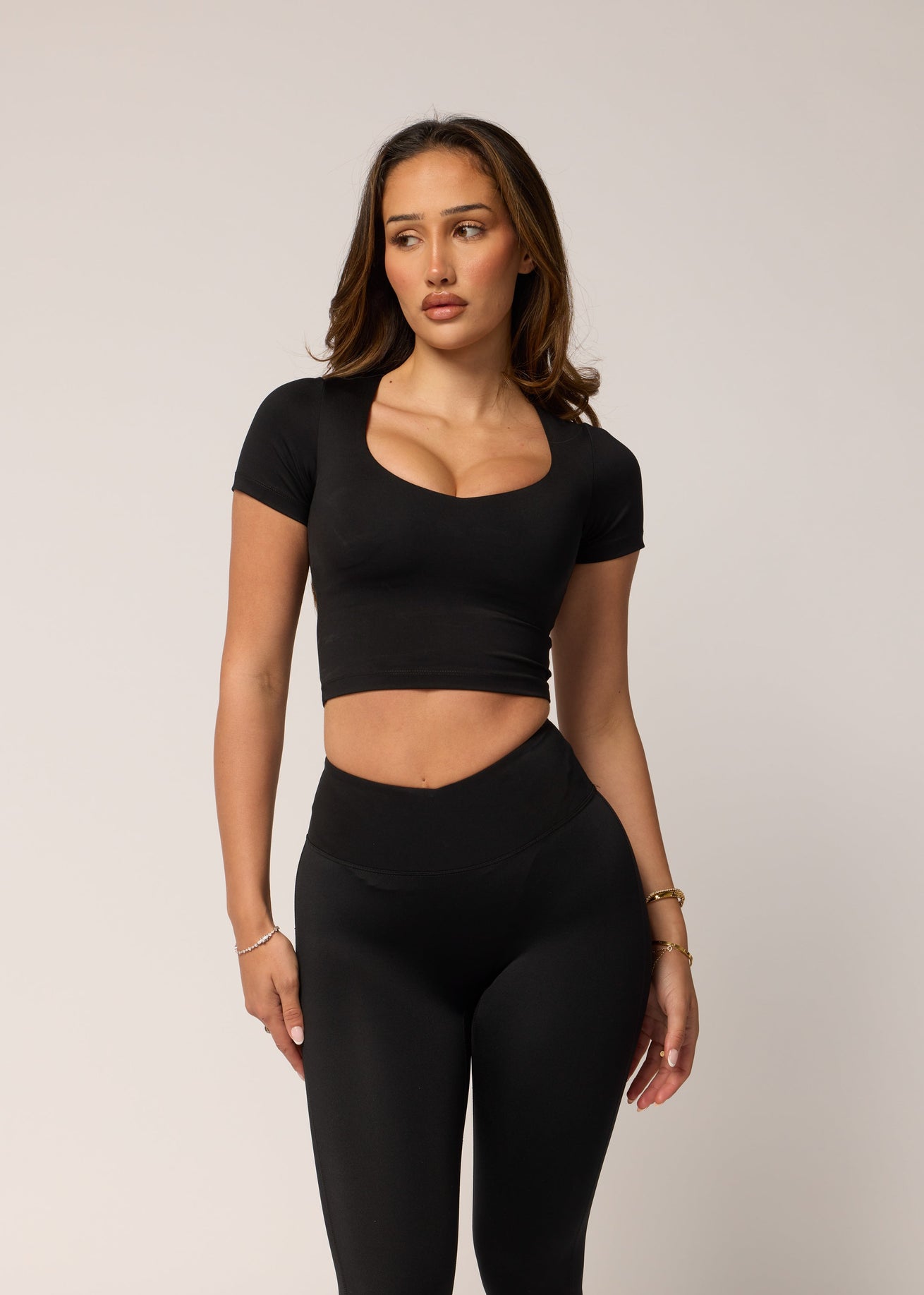 Levate's Core Chloe Crop combines style and function with a flattering V-neckline and short sleeves. Designed with an in built bra and removable padding, it provides ultimate support and flexibility. Perfect for dressing up or down, this versatile crop is a wardrobe essential.