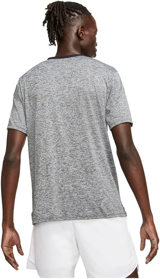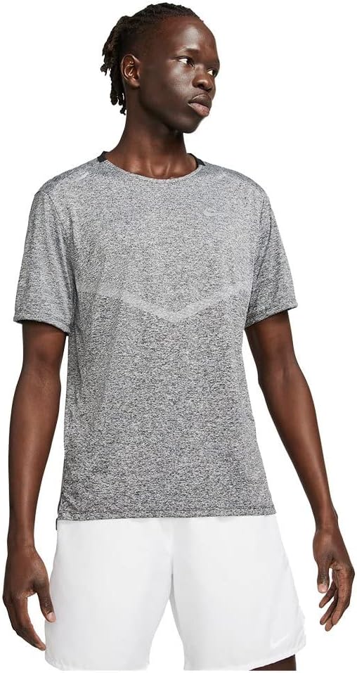 Stay cool and comfortable during your runs with this Men's Nike Dri-FIT Rise 365 Running Tee in sleek grey. The advanced Dri-FIT technology whisks sweat away from your skin, keeping you dry and focused on crushing your goals. Lightweight and breathable, this tee moves with you through every stride, whether you're hitting the pavement or the track.