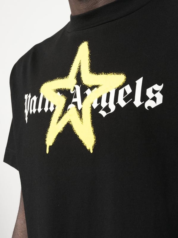 Palm Angels Star Sprayed Monogram T-Shirt 'Black/Yellow'
